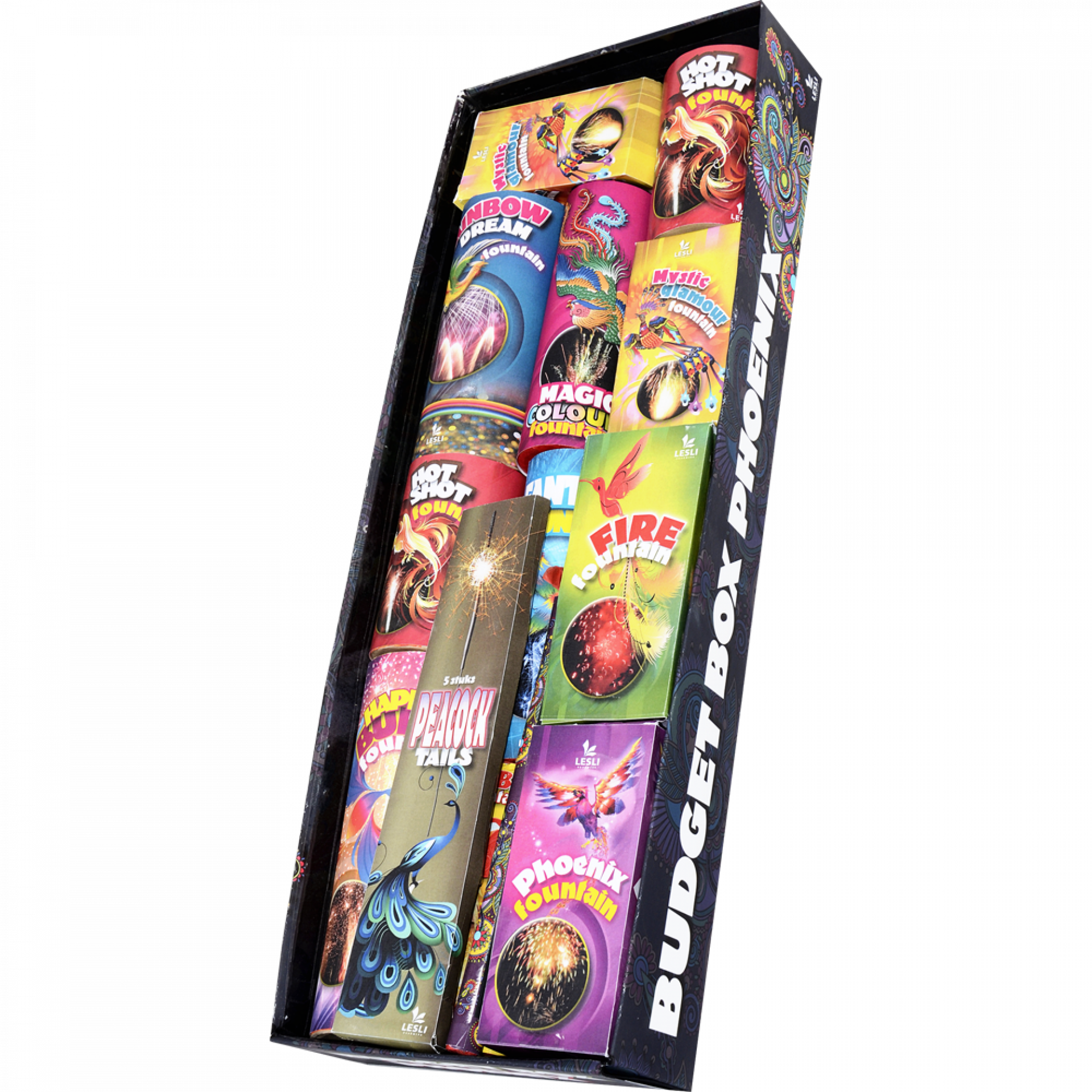 Gevarieerd sierassortiment met veel verschillende fonteinen en 5 morning glory handfakkels.